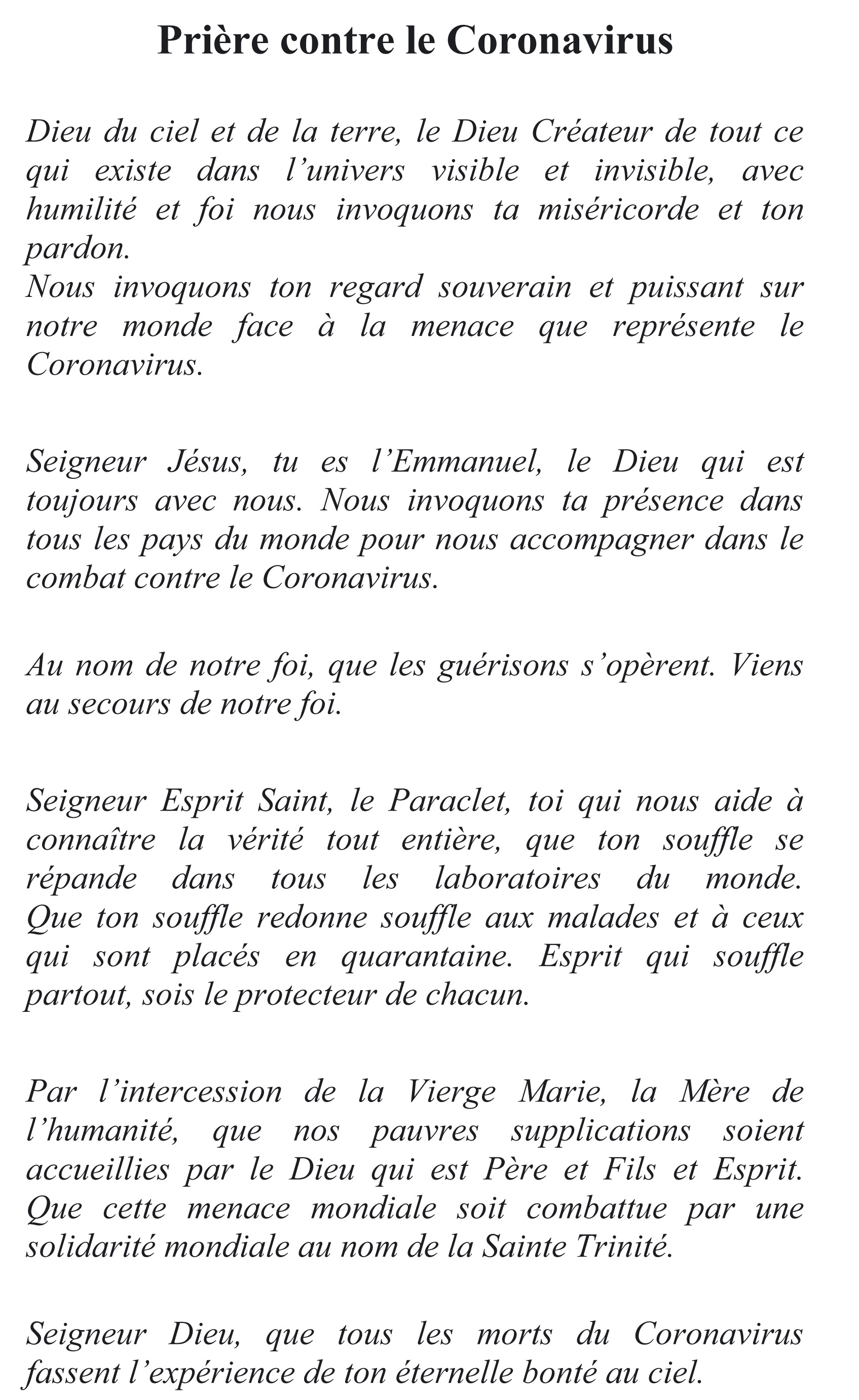 J’invite chacun au calme et à la sérénité. Il faut sortir de la spiritualité d’agitation pour une spiritualité de mental christique. Un croyant est serein devant toutes les situations parce qu’il fait toujours un dépassement. Que tu sois croyant ou pas, devant cette situation, on doit tous reconnaître que l’homme seul ne peut rien malgré son intelligence et sa sagesse.